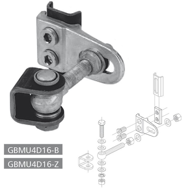 4-dimensioneel verstelbaar gegalvaniseerd 180° scharnier. Diepte, hoogte en ruimte tussen scharnierpaal en poortkader zijn regelbaar en ook de draairichting kan men kiezen. Slechts één type vleugel hoeft geproduceerd te worden voor zowel links- als rechtsdraaiende poorten. Lasonderdelen verkrijgbaar in verzinkt staal.